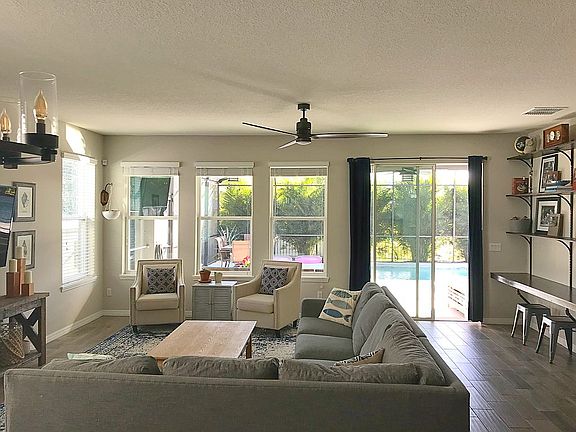 This gorgeous Single-Story. 4 bedroom, 3 bath pool home in Orchard Hills is move-in ready with lots of upgrades. This well-appointed home has a beautiful kitchen with wood cabinets, granite counter tops, double oven, subway tile backsplash and custom pantry. Throughout the main areas of the home you will find wood-look ceramic tile and upgraded light fixtures. The Owner's Suite is large with a custom closet to keep you organized. This home has a spacious front porch with pavers, paver driveway and lush landscaping. For your enjoyment, the backyard has a relaxing lanai and new pool to enjoy the Florida sunshine. Orchard Hills is a very popular community with Resort Style Pool, Fitness Center and Playground. Your HOA Fees cover your yard maintenance, sprinkler repair and yard pest control. Centrally located in Horizon West, this home is zones for Keenes Crossing Elementary, Bridgewater Middle and Windermere High School.