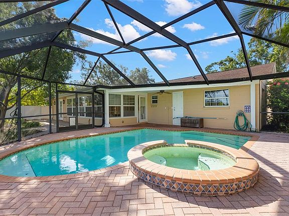 Over 11 acres of a beautiful park setting awaits you, as you step out your back door into Denver Park. This well-maintained park offers tennis, pickleball, basketball, softball, a playground and much more … an outdoor enthusiast and family’s dream! This 4-bedroom, 3 bath home sits on a large lot, offers over 2,200 square feet of well-planned living space, and sits in the highly desired Ponderosa Shores community. This area has the benefit of underground utilities, including electricity, which leads to less power outages and a more beautiful view of the homes and landscape that exist. A beautiful screened-in pool, accompanied by a jacuzzi, makes a great setting to entertain friends and family. Inside, a custom kitchen, with all-wood cabinets, awaits. The 4 bedrooms offer space for that home office, out-of-town company, or a growing family. Dimmable ceiling lights in several rooms bring several settings for that decorator’s touch. The shingle roof was replaced in 2007. This home is a short drive to a Whole Foods, Trader Joe’s, 2 Publix stores, as well as the many great restaurants along 4st St. N., and is less than a 5 mile drive, or bike ride, to downtown St. Petersburg. Less than 2 miles away, you can enjoy a YMCA, which opened less than 2 years ago, as well as a public golf course. Though many homes in this community were impacted by flooding in 2024, many have already been updated, with families back in. Overall, the landscape of Ponderosa Shores has already begun to see change, and will soon be filled with homes valued at over $1,000,000. After seeing this home, with great bones, brought back to its former self, this could mean a great investment for the one fortunate enough to make this purchase.