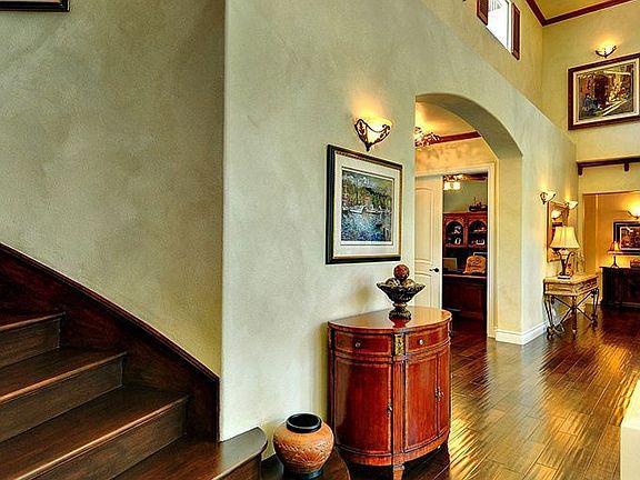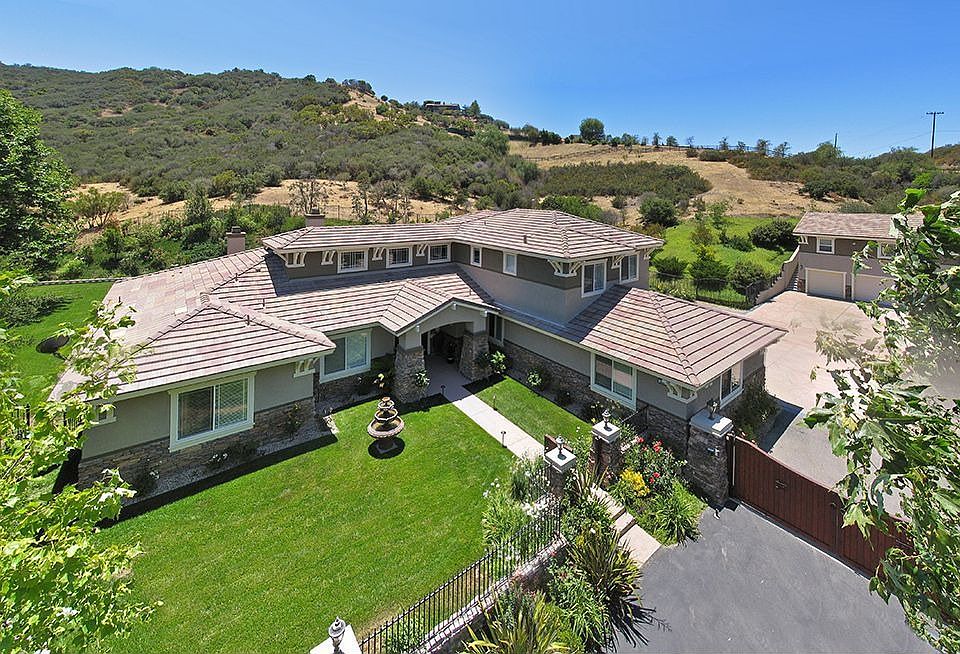 This is a private, thoughtfully designed, open-flow home located in the exclusive gated community of Westlake Country Estates situated on a picturesque lot with gorgeous mountain views. You will be captivated by the tree-lined driveway that leads to the impressive entrance of this great home. The expansive motor court, 5 car garage, cascading pool, spa, outdoor BBQ, lanai, fire pit, large grassy areas and inviting guest house add to the resort-like amenities of this gorgeous home. When you step across the threshold, you will be swept away by the breath-taking view. The detailed millwork, wood plank floors, soaring ceilings, custom cabinetry and smart floor plan makes this ideal for any lifestyle. The Master Bedroom is located on the first floor and is a stunning retreat. Two additional en-suite bedrooms, the office, gym, kitchen, living, dining, laundry, powder and family rooms complete the first floor. The dramatic curved staircase leads to a very large bonus room as well as two more en-suite bedrooms that are just perfect for growing families. With an abundance of natural light, privacy, and space to enjoy a nap in a hammock, a good book by the pool or fun-filled games outside, this beautifully appointed estate is ready for you to move right in.