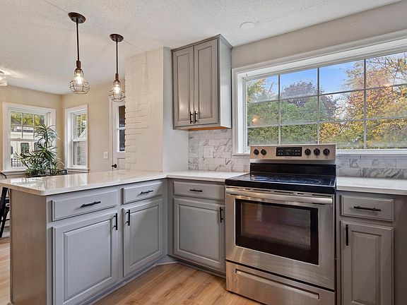 Adorable 2 story home in a great Maplewood location! This home has so many wonderful spaces. The beautifully remodeled kitchen has new quartz counters, backsplash and flooring, tall cabinets, stainless steel appliances and more, and it includes eat in space and breakfast bar. Main floor laundry with cabinets. Front and Rear Deck. Nice, fully fenced yard. Newer Roof and updated mechanicals, windows and electrical panel. Main floor also features a second and even a third space for den, office, flex space. Everything flows in this sunny, inviting home. The upstairs has gorgeous refinished hardwood floors with two separate wings and ample closet space. There is a walk thru 4th bedroom as well as another tv/office space. Bruce Vento Regional Trail and Gateway are less than 2 blocks away!