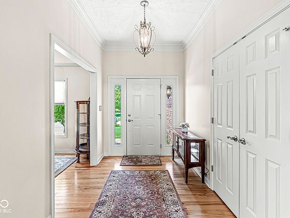 GREAT OPPORTUNITY in sought after prestigious Forest Commons! ONE OWNER immaculately maintained and BEAUTIFUL like new Lazarro custom brick home in this serene neighborhood. OPEN HOUSE SATURDAY JUNE 15, 1-3 PM. 1-1/2 levels. Formal entry, crown molding. Elegant great room. Gleaming Hickory hardwood floors, Dining Rm, large Kitchen with Breakfast area and lots of natural light. Deck off breakfast area to fully fenced backyard. 9ft ceilings, 11ft ceiling in great room, masonry wood burning gas starter fireplace (or gas log). Spacious primary suite w tray ceiling, WIC, double vanities; kitchen with beautiful 48" cabinets, granite counters, upgraded Kitchenaid appliances; 3B/2.5B, Huge bonus room on 2nd level, could be used as 4th bedroom or recreation room. Ceiling fans throughout. Laundry/mud room. Front yard irrigation. 3 car extra deep garage for storage, utility sink. Very convenient to shopping & entertainment in Avon & Brownsburg. Avon Schools. Updates: 2024: Freshly painted interior. 2023: windows serviced or replaced, upper siding. 2021: fenced backyard. 2020: new garage doors, kitchen appliances. 2018: primary bath remodel, new carpet, new hickory hardwood floors. 2015: New Bryant 2 zone HVAC. 2013: Roof and gutters. Washer/dryer, dining room table/chairs are negotiable. Great location and 20 minutes to IND airport. Don't miss the opportunity to make this remarkable home your sanctuary!