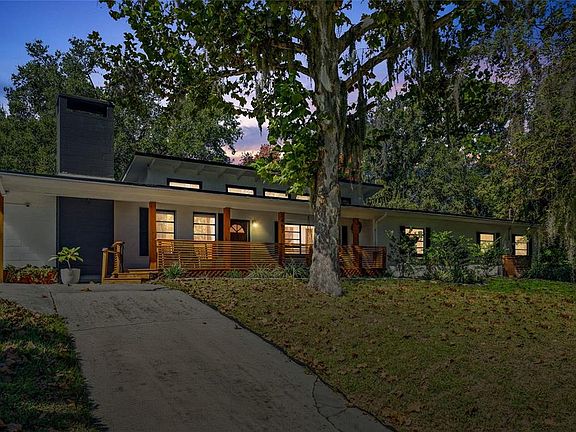 Nestled in the highly sought-after Pinecrest neighborhood, this beautifully remodeled home perfectly blends charm, comfort, and modern elegance. A leisurely stroll takes you to the heart of historic Mount Dora, where boutique shops, fine dining, and lakeside sunsets await. Step inside to discover a bright, open floor plan highlighted by stunning knotty pine ceilings that add warmth and character to the spacious living area. The chef-inspired kitchen features expansive counters, a breakfast bar for casual dining, and new stainless-steel appliances and sink (2022) — perfect for both everyday living and entertaining. The split floor plan offers privacy and comfort, with a gorgeous primary suite showcasing a serene private sitting area, new laminate flooring, wood burning fireplace, vaulted ceilings, a large walk-in closet with custom built-ins, and a luxurious primary bath with dual vanities and a soaking tub. Enjoy the Florida lifestyle outdoors with an inviting side patio, updated landscaping, and amazing curb appeal. Additional upgrades include a new roof (2023), new lighting and paint (2022), and a Bluetooth-enabled garage door system (2022). The oversized garage provides plenty of room for tools, toys, and storage, complemented by two driveways for ample parking. Relax in the evenings on your new 8’ deck, the perfect spot for unwinding with a cup of coffee or a glass of wine while taking in the gentle Mount Dora breeze. Complete kitchen and primary remodel, new windows and more.