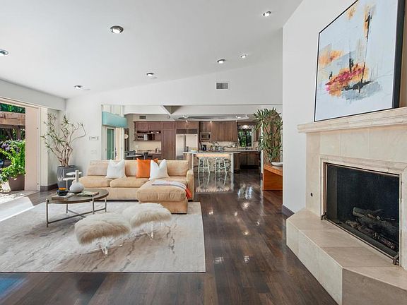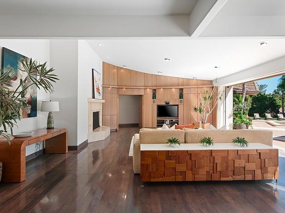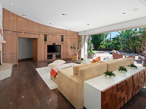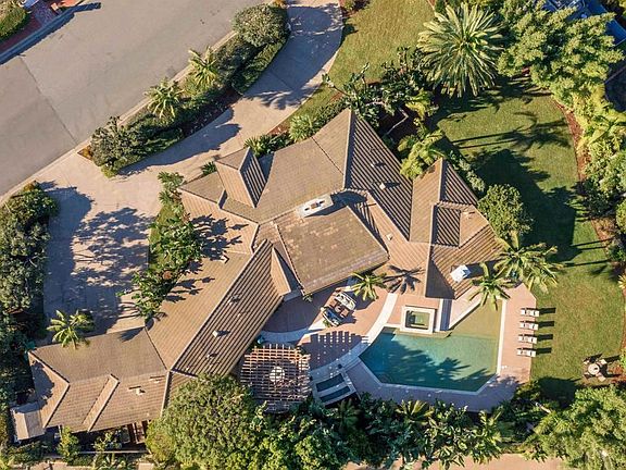 Located in La Jolla’s exclusive Muirlands neighborhood, this immaculate single-level estate sits behind a circular driveway on an expansive 25,400 SqFt (.58-acre) lot that’s surrounded by lush landscaping and offers total privacy both inside and out. The resort-like entertainment backyard features a saltwater lap pool with a baja shelf wading area, a saltwater spa and fountain, a custom pergola with Viking outdoor kitchen and gas firepit, plus a sprawling, flat stretch of grass that wraps around the edge of the yard and offers the ideal setting for pets or backyard sports. Extensively renovated by Cicone Construction over the course of nearly two years, this pristine home’s rambling floorplan features high ceilings and select pecan hardwood floors throughout with 4 en-suite bedrooms, plus 1 optional bedroom/office and a powder room. Upon entering through double doors, pass through the foyer that’s flanked by a separate dining room and formal living room with fireplace, then prepare to be taken aback by the expansiveness of the open concept great room complete with vaulted ceilings and Weiland glass pocket doors that disappear to seamlessly blend indoor and outdoor living. The professional chef’s kitchen features state-of-the-art stainless-steel appliances, custom wood cabinetry, large kitchen island with Viking six-burner cooktop, walk-in pantry, and a breakfast nook that’s surrounded by large bay windows overlooking the backyard. The adjacent great room’s informal living space enjoys a fireplace, built-in cabinetry that houses a hidden dry bar and media center with surround sound audio system, as well as access to the three-bedroom owner’s wing with a single-sided locking hallway that blends into the built-in cabinetry when closed and provides “safe house” functionality for the primary suite and adjacent bedrooms. The owner’s wing features a dedicated office (optional bedroom), a large en-suite bedroom, and a restful primary suite with vaulted ceilings, a gas fireplace, sliding door access to the backyard oasis, a spacious walk-in closet, and a spa-like bathroom with walk-in shower, separate soaking tub, sit-down vanity area. The guest bedroom wing that’s situated off the kitchen, features a powder bathroom, two en-suite bedrooms, and as well as access to the laundry room and attached, 3-car garage. Beautifully designed with exceptional detail and too many amenities to note, this spectacular property has the rare ability to serve as the perfect setting for both everyday living and effortless entertaining alike.