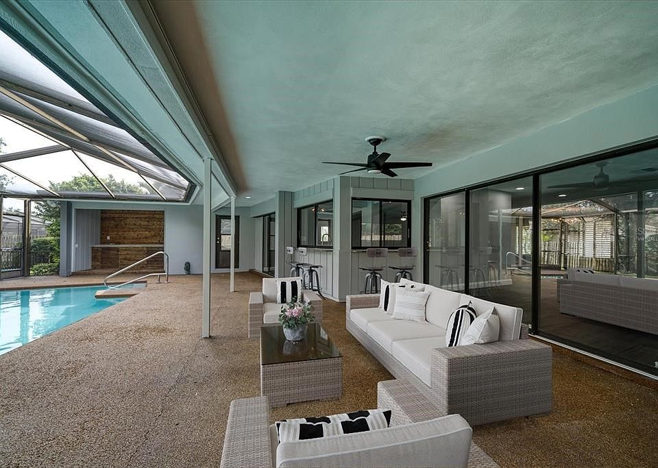 One or more photo(s) has been virtually staged. Do not miss your chance to own this beautifully updated property in the highly desirable addition of Coachman Ridge! As you walk into this newly renovated four-bedroom, two-and-a-half bath pool home with an outdoor kitchen, you will know this is the one. Walking through the front doors, you enter the living room with pocket sliding doors that open directly to the screened-in pool area. To the left of the living room is the front bedroom with a half bath which is perfect for an office or bedroom. Just past the front bedroom, you enter the amazingly updated primary bathroom with a standalone tub, walk-in shower with herringbone subway tile, walk-in closet, and double vanity. The primary bedroom has direct access to the covered patio and pool area with pocket sliding doors. To the right of the front entrance leads you into the family room, an open concept kitchen with an island and granite countertops. The family room has a wood-burning fireplace and an inside laundry room directly off the family room. The kitchen has new shaker cabinets with beautiful new granite countertops. The kitchen also has a pass-through window to the pool area for convenient food and beverage sharing and fresh air. There are two more bedrooms, a full pool bathroom just off the family room, and a separate dining/breakfast area with sliding doors leading out to the pool area. The pool area consists of a covered outdoor cooking/kitchen niche, and a covered patio area. The pool area is screened-in and has been newly resurfaced along with a new pump and filter. The roof was replaced in Oct 2018, and the HVAC was replaced in February 2020. Schedule your showing now! 2022-11-16