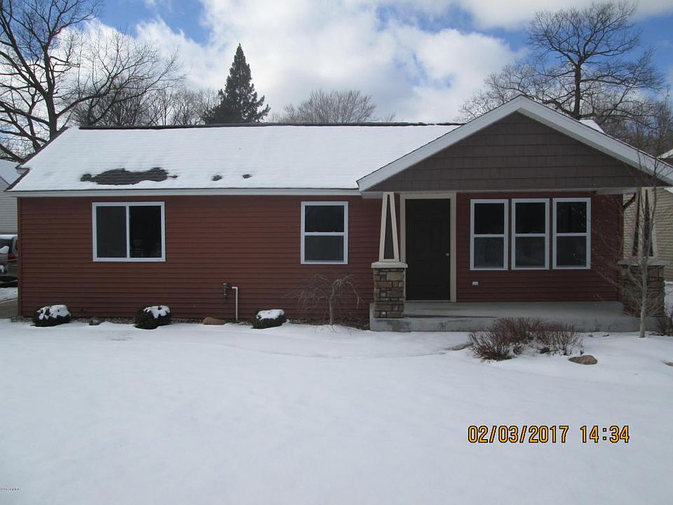 Totally renovated in last 3 years from foundation up. Ranch style, 1120 square foot, 3 bedroom, 1 bath, 24x24 2-stall detached garage with built to last shelving, situated on a 58x351 .47 acre lot. New siding, roof, windows, garage door, exterior doors and light fixtures. Stone accents on house. Seamless gutters. New porch, new asphalt parking area and some newer concrete. Newly landscaped with underground sprinkling. Water and sewer assessments are paid. Central air. Easy highway access. Interior features include all new insulation, plumbing and mostly new electrical wiring with new light fixtures and LED bulbs. Ceiling fans in the bed rooms. New hot water heater, drywall, trim, doors and paint. Brand new kitchen and bath cabinets with granite countertops and tile back splash.