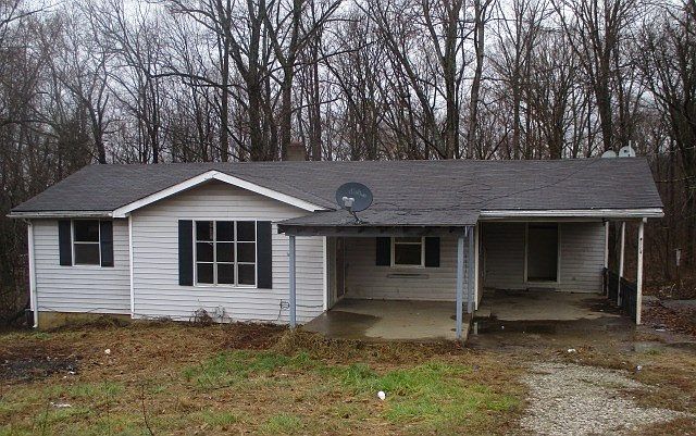 1 story ranch style home, 3 beds 1 bath REO property sitting on 7.75 partially wooded acres.