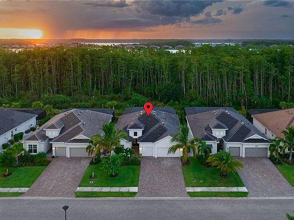 Welcome to 14673 Blue Bay Circle, a luxurious oasis in the remarkable resort-style, lakefront, boating community of WildBlue. This 3-bedroom plus den, 3-bathroom residence offers 2445 square feet of thoughtfully designed open-concept living space, with an outdoor space like you've never seen before. The expansive island kitchen is equipped with upgraded stainless steel appliances, quartz countertops, shaker-style soft-close cabinetry, custom tile backsplash, and a natural gas cooktop with a stainless steel hood vent. The great room includes a generous dining area overlooking the custom pool and a spacious family room with built-in surround sound. Tasteful upgrades throughout the home include crown moulding, custom paint in each room, custom window treatments and drapes, glass shower enclosures, and lots more. Step outside to find a fully outfitted outdoor kitchen, travertine tile deck, and a magazine-worthy custom pool with a spa, sunshelf with bubbler, four waterfalls, multi-colored LED lights, and a state-of-the-art electric and gas heater. The 3-car garage is finished with upgraded epoxy flooring, added insulation, air conditioning, and custom fit storage throughout. Enjoy peace and quiet with the protected natural preserve behind the home. Extra upgrades include a whole-home natural gas generator, whole-home water softener, and reverse osmosis filtration system at the kitchen sink. Rolldown hurricane screen on the covered lanai is ordered and being installed soon. WildBlue's amenity peninsula provides breathtaking views of the 435-acre WildBlue Lake and includes a resort-style pool, separate lap pool, sandy lakefront beach, fitness center with studios, locker rooms and saunas, full-service spa, indoor restaurant and bar, poolside restaurant and bar, tennis and pickleball courts, a pro shop, basketball, boat ramps to over 800 acres of freshwater lakes, boat slip rentals, kayak storage, and more. Don’t miss this incredible opportunity—schedule your private viewing today.