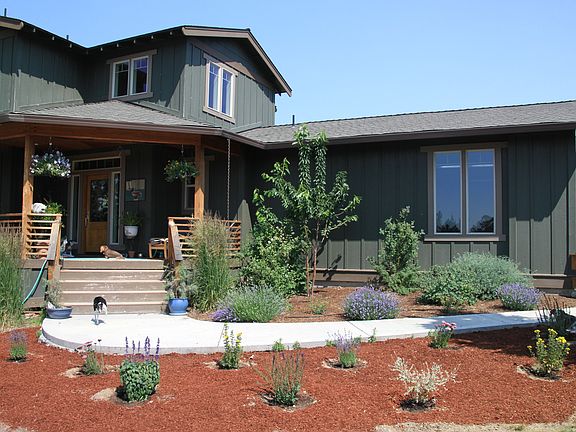 Our lovely 2438 sq. ft. custom home is on 5 acres next door to Brasada Ranch on the western slopes of Powell Butte. Plenty of privacy, very quiet with amazing views of the Cascades from Mt Jefferson to south of Bachelor. Both the sunsets and the sunrises are tough to beat in beauty! Built in 2008 with very high quality custom features. Very energy efficient home that stays warm in the winter and cool in the summer with two separate HVAC zones. The upstairs, very private master bedroom, also has incredible Cascade views, his and hers walk-in closets, double sinks with custom cherry wood cabinets, glass block shower with dual shower heads, and a private outside Trex deck with wind screen. Wake up every morning to the sunrise reflecting back to the west off the Cascade mountains while you are still in bed! Also upstairs is an alcove that is perfect for a home office with a view, where on a clear day from the office window you can see Mt. Hood. Beautiful, custom light fixtures throughout with tons of recessed lighting in the kitchen, living room, upstairs and the covered wrap-around porch as well. The main floor has the kitchen, dining room and living room in a great room layout. There are also two bedrooms and one and a half bathrooms on the first floor, plus a large laundry/mud room with a big sink. Bamboo flooring throughout most of the house with 18" travertine tile in all the bathrooms and laundry room and carpet in the two guest bedrooms. Beautiful kitchen with 5 burner propane gas stove, double ovens, built-in microwave, stainless steel appliances, granite tile countertops, tile accents and custom figured cherry wood cabinets with soft closing drawers. Walk-in pantry and under the stairs storage. Interior doors are all solid knotty alder wood and are just beautiful.. Wrap-around large, covered Trex deck porch on the south, west & north sides with cedar rails to take advantage of the views. Two car garage attached to house with a finished, insulated interior. Central vacuum system. Custom stone, propane fireplace and wet bar in the living room. Mostly low maintenance yard with juniper accent trees and a huge wildflower garden (2,500 sq. ft.). Separate garden area with deer fence. Some people think that Powell Butte is far away. Actually we are just 18 miles to Costco in Bend, 20 miles to downtown Bend, 12 miles to the Redmond airport or Fred Meyers store, 45 miles to Mt Bachelor and 18 miles to famous rock climbing at Smith Rock State Park. However, we are far enough away that we watch it rain/snow in Bend, but it barely makes it here. All the highways are fast, nice roads with very light traffic and no lights! It sits on the northern border of the luxurious Brasada Ranch Golf Resort. No pets please. The rent is $2300. month and is available the first part of February.
