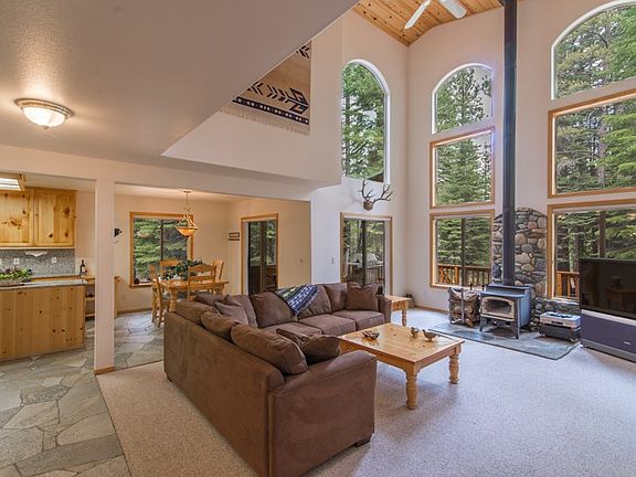 Immerse yourself with views of the enchanted forest created from the floor to ceiling living room windows. This impeccably maintained Tahoe Donner cabin has an open living room, dining and kitchen area offering a wonderful space for entertaining. Feel the peacefulness this home offers, nestled in the towering pines located next to National Forest land. Dine or relax in Tahoe style on the large back deck offering a partially covered area. Priced to SELL, this wonderful home wont last long.