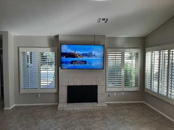 Eagles Nest at PebbleCreek - a Robson community. New light gray and white paint, plantation shutters throughout, newer tile floor, all appliances incl W & D, ceiling fans, walled backyard, corner lot, fireplace, 65" mounted television included (yet to be re-mounted after painting), water softener, some patio furniture included, built-in BBQ, double garage Must be 55 or older to rent. Owner pays HOA fees, tenant pays all utilities, no smoking in the house, pets. HOA compliance required at the home and throughout community. .Cars must be garaged overnight. Access to all community amenities as a renter to include 3 pools, 2 restaurants - including 2 bars, 2 fitness centers, tennis, pickelball, arts & craft center, theater, ballroom, coffee shop, bocce ball - golf fees are extra (renters as well as owners)
