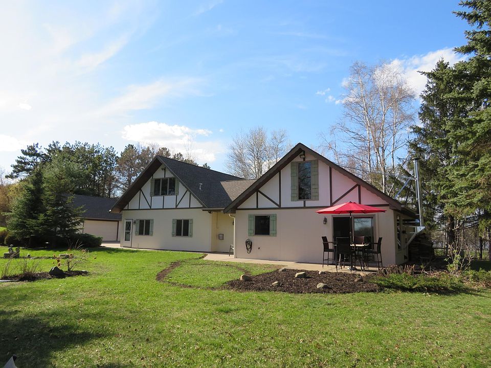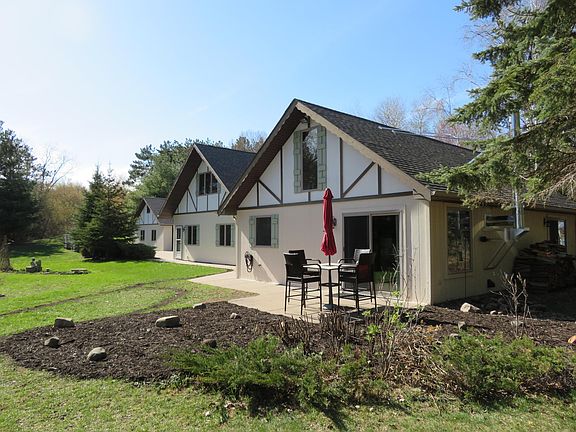 Beautiful Custom built one of kind 3 bedroom 2 bath Lake home sits on 3.59 private acres with over 300ft of frontage on South Fish Lake. Home boasts: Sprawling panoramic views from every room. Working from home? The loft would make a perfect office with views of the lake. Bedrooms overlook N Fish lake & S Fish Lake.Single level living makes this home perfect for raising a family or as retirement. Sunday funday? 27x14 3rd stall attached garage completely finished: Insulated, heated, carpeted complete with a bar and refrigerator. Perfect for Game day or climate controlled workshop.Additional 34x26 3 car detached garage with loft..Don't Wait! Escape the hustle and bustle of everyday.Relax and enjoy the abundant wildlife and sounds of beautiful trumpeter swans and loons this amazing home has to offer.Fish, swim,kayak all water sports from your own sandy beach at this wonderful tranquil property. Why go camping when you can live the life daily at your own private OASIS!