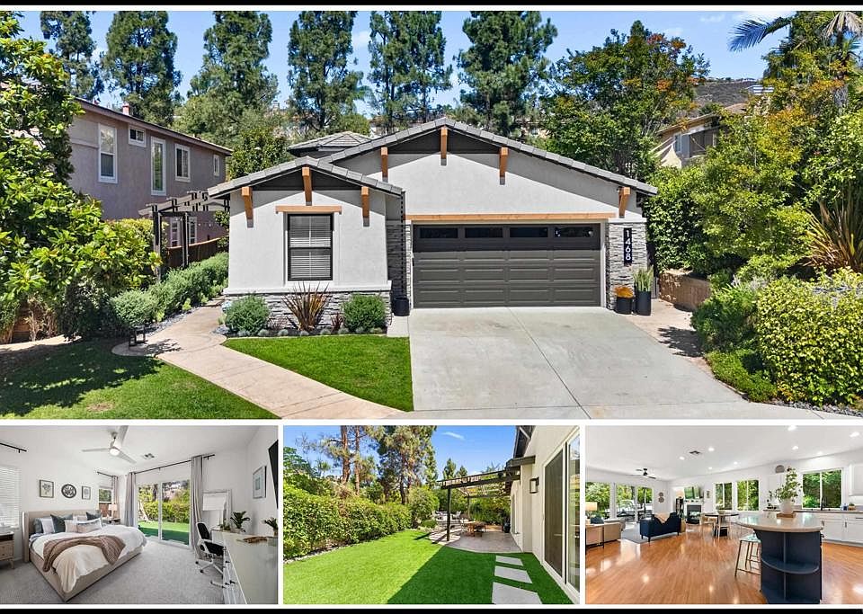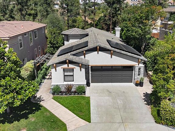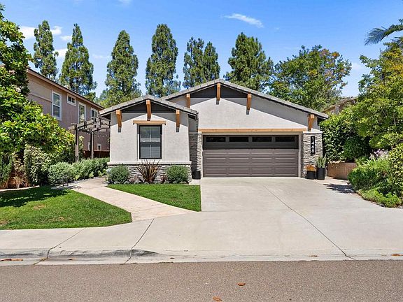 Rarely available SINGLE STORY home with an amazing location right in the heart of San Elijo Hills! Recently upgraded with premium stonework and custom wood corbels, this single level home exudes a welcoming charm and stunning curb appeal. Enjoy a completely refreshed interior featuring new lighting, stylish fixtures, modern fans, updated hardware, updated paint, updated Kitchen-Aid brand appliances, new carpeting in the bedrooms, and a fully remodeled guest bathroom featuring a Kohler soaking tub. The solar system with 125% power production, newer water heater, smart garage door, and updated furnace ensure convenience and comfort. The backyard is a tranquil retreat with views of surrounding trees, newly added high-quality turf and lush landscaping, including succulents, ferns, and a lime tree. Ideally located in "lower San Elijo Hills" close proximity to the heart of Town, shops, schools, parks, and scenic hiking trails. Zoned for San Elijo Elementary, San Elijo Middle, and San Marcos High School.