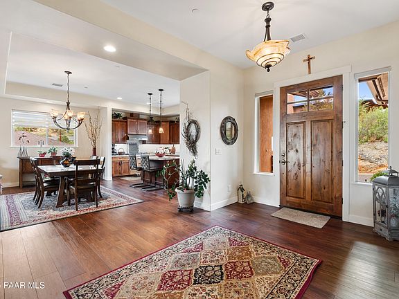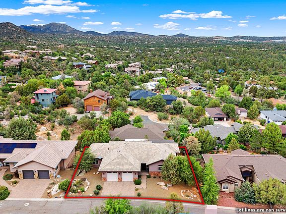 Well designed and appointed single level home in a great south west Prescott location. This home boasts an open floor plan, Kitchen with island, gas cooktop, wall oven, knotty alder cabinetry. Dining area has space for your largest table and opens to the Living Room with corner gas fireplace. LVP flooring, tray ceilings and light filtering dual shades throughout the home. Primary bedroom has deck access, walk in closet and a spa bathroom with walk in shower, soaking tub and dual vanity. Comfortable guest bedroom, Office that also could be a guest bedroom. Full guest bathroom and a powder room. Laundry Room with utility sink and added storage. The deck has Granite Mtn., SF Peaks views, Pergola. Unfinished walk out basement offers opportunity for shop, man cave, garden storage. NO HOA.