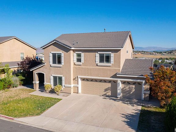 Come see this sparkling home with beautiful views! Step into the open-concept living area that features a generous floor plan including a bonus room that could be an office or optional living area off the front entry. The oversized Master Bedroom has a private balcony with amazing views of Mt Rose. It also features 2 walk-in closets. All 3 bedrooms are on the second floor. The high ceilings and large windows create a bright and airy atmosphere throughout the home., The entire downstairs flooring has been updated to Luxury Vinyl Plank. Step into your backyard oasis with a partially covered patio, fully landscaped yard and already planted garden beds along with a separate patio/firepit patio. The property lines extend past the backyard wrought iron fence. If the 3 car garage is not enough room for storage there is an extra large shed on the side of the home for all your storage needs. All 3 bedrooms are very spacious and have blackout blinds & drapes installed. A new water heater was installed in 2022. Check out the virtual home tour. There are video and audio recording devices on the property.
