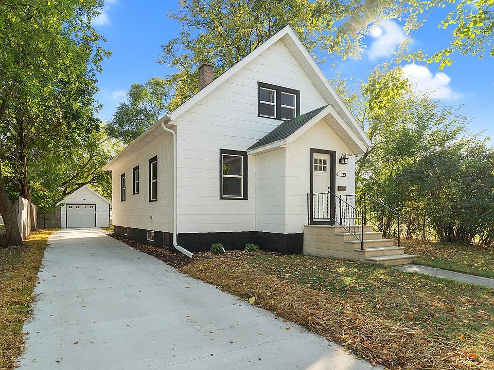 Beautifully remodeled from top to bottom, this 3BR/1BA 1.5 story home greets w/ freshly poured driveway, refinished maple floors & arched doorways. Formal dining w/ original china cabs & modern chandelier. Complete new kitchen w/ shaker cabs, Whirlpool appliance suite & undermount sink. Main floor primary bedroom w/ remodeled dual access bath. Upstairs, bed #2 offers twin closets; both bedrooms have access to attic storage. Major updates such as furnace+A/C unit, gutters, light fixtures, carpet+plank floor & landscaping package have all been done for you! Energy-efficient doors at front, rear & garage as well as a newly built entry in back. Vinyl windows on all 3 levels! Siding type is unknown. Agent is Seller. Previous buyer's financing fell through.
