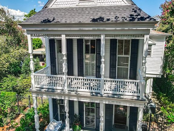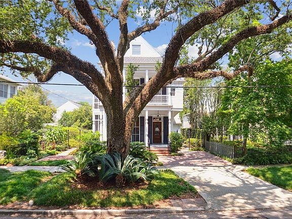 Regal Victorian home with stunning features inside + out. Handsome curb appeal with lush landscaping, brick driveway and stylish front porch with charming swing and 3 Bevelo gas lanterns. Beautiful leaded glass door w/ vestibule opens to long foyer w/ 12' foot ceilings and pretty stairwell. Fabulous double parlor w/ floor to ceiling windows, 2 fireplaces and private screened in porch. Lovely kitchen across rear of home full of windows leads to stunning back patio and gardens. Backyard is private and serene. All outdoor space is impeccably designed allowing for all windows to have pretty view. Ensuite den/study/bedroom on first floor. Spacious primary suite w/ updated bath and custom designed walk in closet upstairs w/ 3 add'l bedrooms + bonus/laundry room. Wonderful features throughout: porches, balconies, wood floors, natural light, tall ceilings, wavery glass windows, molding, medallions, plaster & deep reveal from walls to trim - A true New Orleans beauty! New shingle roof.