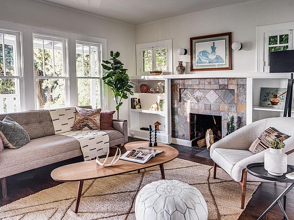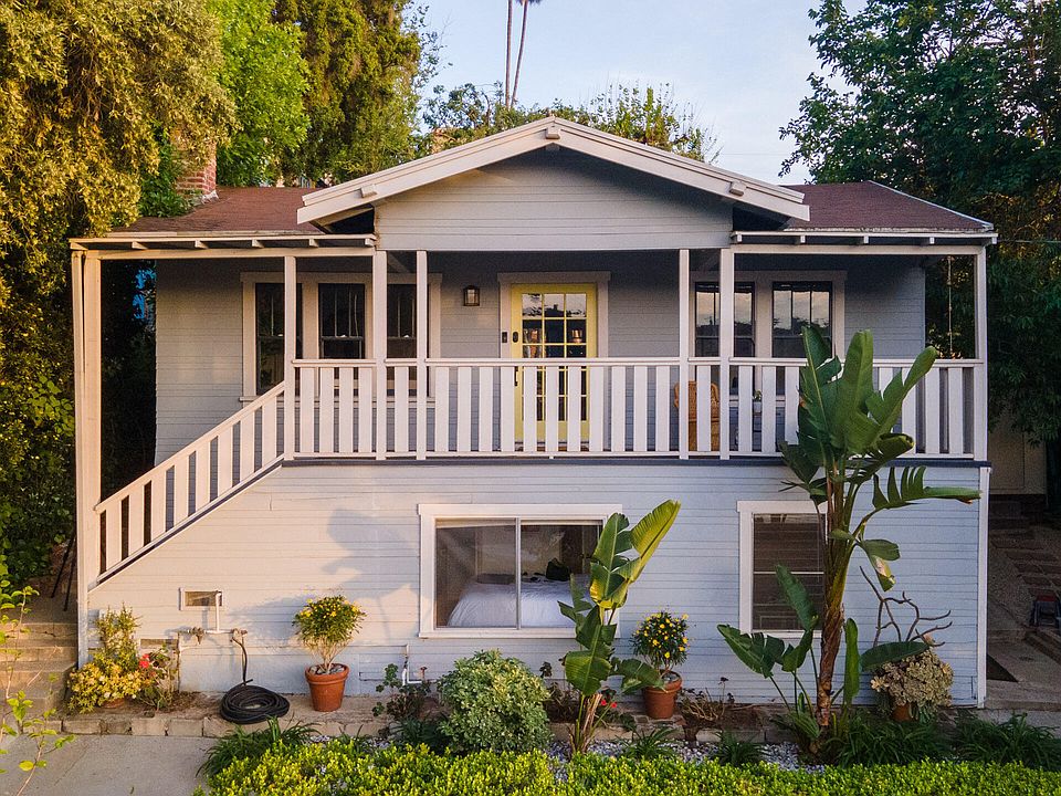 Located on a quiet street, just around the corner from Found Coffee, Little Beast and Trader Joe's, this California bungalow is tucked up atop a verdant hillside with panoramic views. With its treehouse vibes, the 780 sq ft main house has 2 bedrooms, drenched in light and a bright full bathroom. Original Craftsman details and espresso oak flooring lends to the romantic charm of the interior. During summer sunsets, tangerine and pink hues bathe the entire living space, reminiscent of a Monet masterpiece. A separate area downstairs is a one bedroom unit with a private patio which garnered $1600/mo. It's the perfect solution for guests, a creative studio or added income. Entertain and recharge in the magical backyard oasis. Host an alfresco dinner under the stars. For dessert, head up the meandering path to your private perch with views of Griffith Park and beyond. Located in the award-winning school districts of Dahlia Height Elementary and Eagle Rock High School.