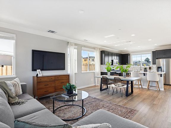 Rounded sheet rock cornersOpen concept floor planDecorative baseboardsLots of lightLed lightingEnergy-efficient cool roof system