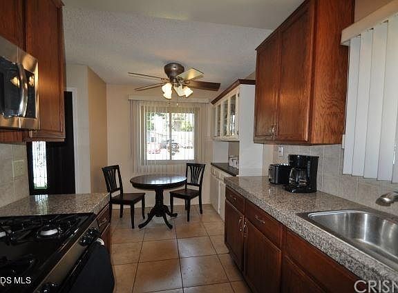 Delightful single story, Simi Valley home with 2 bedrooms, 1 bathroom, and a bonus room addition. Updated kitchen includes stainless appliances, granite counters, and oak cabinets. Refrigerator, washer and dryer included. Partially furnished. Newer laminate flooring and carpet. Newer heating and air conditioning system. Spacious yard features a covered patio, grassy area, large outdoor storage shed, and a view of the hills and mountains. Attached garage with direct access.