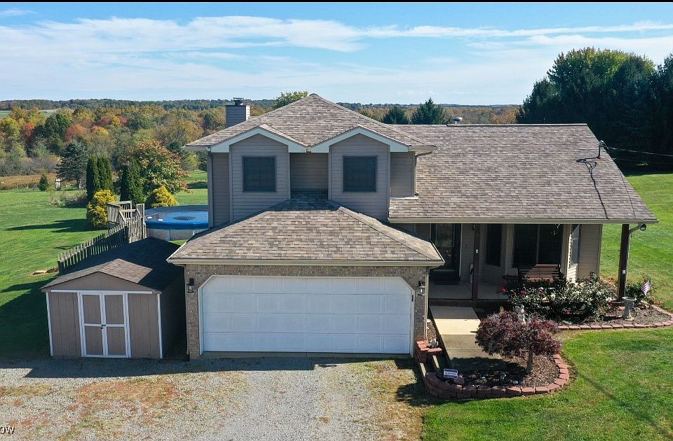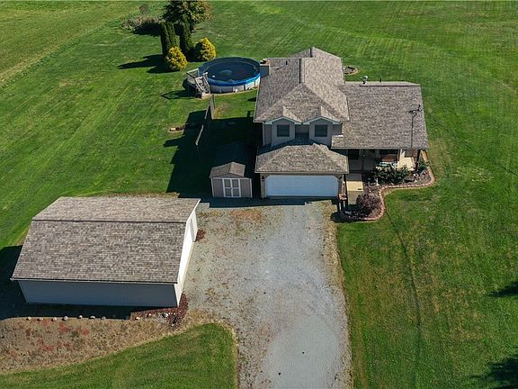 UNITY TOWNSHIP!! A PIECE OF PARADISE with a GORGEOUS VIEW!! Over 1.5 ACRES!! TWO GARAGES for all of the TOYS!! This WONDERFUL HOME features Living Room with bay window; Family Room with WOOD BURNING FIREPLACE, hardwood flooring & French doors leading to newer 20x14 Newer CONCRETE PATIO; Full Bathroom with access to Laundry Room; Foyer with large closet; Kitchen with NEWER COUNTER TOPS, oak cabinetry, bay window, breakfast bar and pantry; Dining Area with French doors overlooking backyard; Master Bedroom with cathedral ceiling, walk in closet & French doors leading to BALCONY with a VIEW; Master Bathroom; Two Additional Bedrooms with large closets; Basement with 12 course block ready for your Rec Room; Central Air; Oak Trim; Andersen Windows; newer 20x5 FRONT CONCRETE PORCH; BEAUTIFUL POOL with Deck (24' Around); Attached TWO CAR GARAGE and Detached 24x32 GARAGE!! Newer items include: Carpeting in Bedrooms/Hall/Steps-2025, Garage Door Opener-2025, Basement Painted-2024, Kitchen Counter tops-2023, Concrete Front Porch-2023, LVT Flooring-2022 on main level, Water Softener-2022, Roof Shingles-2021, Concrete Patio-2021, Holding Tank-2021 and Furnace-2020. CALL TODAY to schedule your showing!! Owner Agent. OPEN HOUSE on SUNDAY October 26th from 1:00 to 3:00 PM.