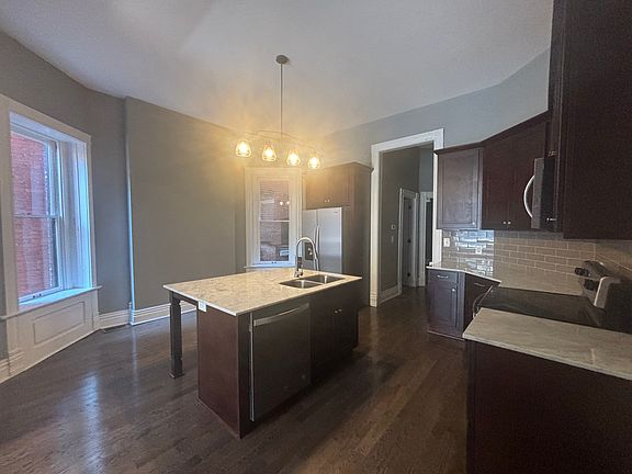 Old Louisville Gem. Close to campus. $1550/m. Recently renovated. This 2 bedroom, 2 bath, 1st floor unit is nice. Hardwood floors throughout, living room has beautiful fire place (all fireplaces are looks only) and stained glass window. Kitchen is beautiful complete with new shaker cabinets, granite, tile backsplash, island, and stainless steel appliances. Hallway/laundry with washer & dryer. Bathroom has beautiful tile, clawfoot tub, vanity with granite and vessel sink. Both back bedrooms have their own entrances. Main bedroom has its own bathroom with large stand up shower, closet and large vanity with granite and vessel. Shared back yard and parking out back or street parking. Your responsible for LGE but water and trash included. Deposit $1550. $60 application fee (covers 2 people) Email for more info.