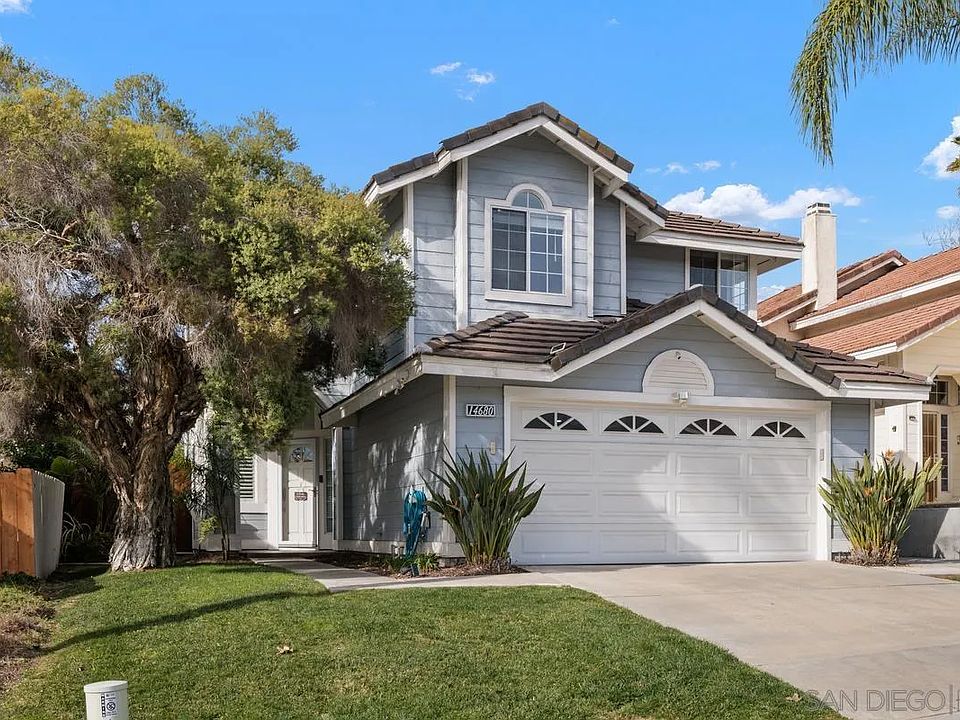 VIEWS, SOARING CATHEDRAL VAULTED CEILINGS, OWNED SOLAR! Fabulous Carmel Mountain Ranch home has 3BD/2.5BA, panoramic views of open space from beautiful backyard, great for entertaining! High end upgrades throughout, gourmet chef's kitchen w/ SS appliance & granite countertops. Gorgeous wood-look tile flooring downstairs and luxury vinyl flooring throughout the 2nd level, double sided fireplace in living and family room, plantation shutters. Close to park & elementary school & so much more!