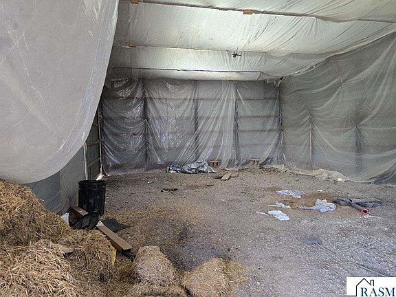 Buildable on North side of the Hwy, Lake front view of Lake Linden, 28x45 Machine shed with dirt floors, 12ft side walls, connected to power, 5 grain bins, used for storage, No well or septic, LP tank leased