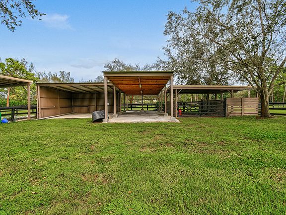 Paradise in the Equestrian Community of Caloosa! Privacy abounds on over 10 acres of finely landscaped and maintained grounds and arenas. The property is a training facility suitable for any discipline. This estate is move-in ready for the equestrian season, or your annual occupancy. Every attention to detail is present in this property. The elegant main house has generous sized entertainment areas, dining room seating for 12, chef's kitchen with bar and breakfast area, and 2 primary bedrooms with ensuite baths in addition to dens/offices. All bathrooms have been renovated with quality grade finishes. The pool can be accessed from all rooms and offers various seating arrangements, grill area, and screened-in nook. The grooms apartment, with laundry, is completely renovated and is attached to the 6 stall barn. Only 5 miles from Palm Beach North County Airport, and 30 minutes from Wellington, your 10 acre property, fenced and cross fenced, has all of the equestrian amenities you need. The barn has an air conditioned tack room, half bath, feed area, fly misting, fans, stall mats and separate water and septic system. Enjoy the 1/2 mile riding path around the perimeter of the property, Dressage arenas, riding pen, pastures, paddocks and lay up paddocks. The 20'x40' shed easily accommodates your trailer. Over $600,000 in upgrades since 2021. Do not miss this exceptional opportunity!