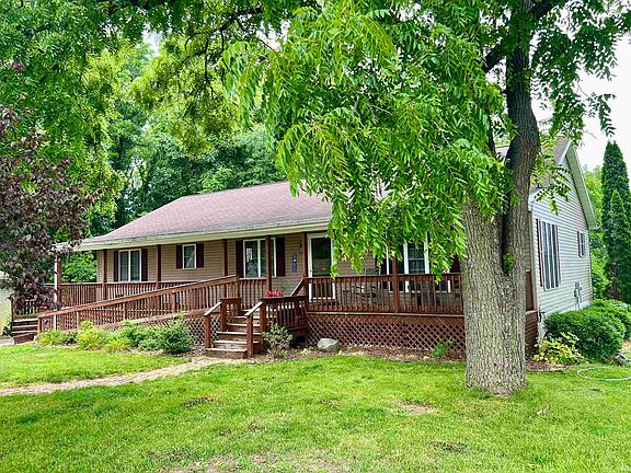 Peaceful Country Setting with 1 acre and a 3 car detached garage! Home has a large wrap around porch with a ramp. There is also a back deck off of the dining room. Main floor is an open concept perfect for entertaining. Kitchen has a large pantry. Home has solid doors and beautiful trim throughout. Large Main Floor Laundry Room. Master Bath has a large walk-in shower. Large finishable walk-out basement with 9 foot ceilings. Newer furnace.
