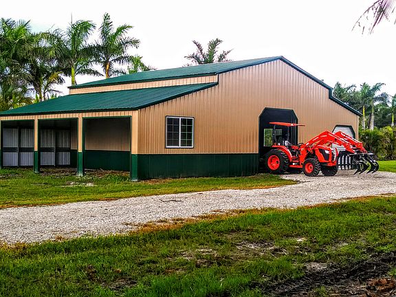 Now includes apx 10.5 acres of Tropical Paradise, hundreds of marketable palms and new 2018 160 mph metal building! Over $32k invested in new 54 x 36 with 30 x 36' concrete floor, two 10 x10 and one 8x8 overhead doors and 3 bay lean to. Mature Coconut, Royal, Chinese Fan, Foxtail, pygmy date and Areca Palms to enjoy or sell. Additional 6.6 Ac available. Paved frontage, easy access. Partial drive completed, home site cleared and ready. Soil bore test and elevation stake to start your new dream home. City or well Water available. Power will be installed soon! Taxes less than $150/ year due to agricultural use. Backs to private golf course community. Only 15 mins to Cape coral, 20 mins to Fort Myers. Hurry! Won't last! Invest in a piece of Peaceful island living today!