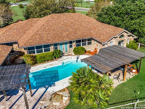 Nestled on a sprawling 7.99-acre ranchette, this picturesque property with a guest suite offers a unique blend of countryside charm and modern amenities. Located in St. Hedwig, TX, this custom Morrison-built home features 3 bedrooms, 2 baths, and 2,191 SF in the main house, plus a separate 1,117 SF guest suite with its own bed, bath, kitchenette, and living area-perfect for multi-generational living. Highlights include: Outdoor oasis with a self-cleaning pool, gazebo, and built-in smoker. Screened-in porch with sauna for ultimate relaxation. Equestrian-ready property with stables, storage shed, and fenced acreage. Primary suite retreat featuring 3 walk-in closets, a spa-like bath, and one closet large enough to double as a sitting room or study. Sun-drenched kitchen with wood cabinetry, stainless appliances, and an island for meal prep. With mature trees and serene surroundings, this property is an ideal setting for a horse property or homestead. Conveniently located in East Central ISD, known for its stellar Choice School programs in STEM, arts, leadership, and dual language. Only 10 minutes to HEB and La Vernia, 7 minutes to 1604, 17 miles/22 minutes to Ft Sam/Brooke Army Medical Center, and 14 miles/20 minutes to Randolph AFB. A new middle school, Valor Middle School, is being built in St Hedwig; it is still in ECISD and is estimated to be completed in Fall 2026. This home truly offers the best of country living with modern conveniences. Call your favorite agent today to schedule a private showing!