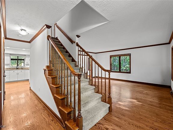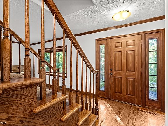 14689 Clydesdale Trail, Novelty –elegant country living on over 3 acres nestled in Red Raider Trails. This home offers a rare opportunity to enjoy the perfect blend of space, comfort and natural beauty. It is a 3 bedroom, 3 bath home residence which spans 3,257 square feet of thoughtfully designed living space sitting on a lot that is both private and has room to roam. Clydesdale Trail showcases a timeless mix of colonial and Tudor architectural elements including brick, stucco, and wood siding giving it a classic yet inviting presence. Upon entering you will notice the spacious, open living areas that are flooded with natural light, creating a warm and welcoming atmosphere. The formal living room and open style dining room are perfect for entertaining guests and family gatherings, while the family room provides a comfortable space for everyday relaxation and has soaring ceilings, fireplace and windows galore. The large well-appointed kitchen features granite counters tops, ample counter space, newer cabinetry and a spacious serving area that encourages both casual meals and culinary creativity with open views of the family room. To finish off this first floor you have a private library/office with built-in shelving and a half bathroom. Don’t miss the mudroom with built-ins off the 2-car garage. Beautiful views are at every window and a 3-season room is off the dining room and deck. Upstairs you will find the owner’s suite with glamour bath, double vanity, granite countertops, skylight and marble floors. Remaining oversized bedrooms have plenty of closet space. Your 2nd floor laundry room, which can easily be converted back to a 4th bedroom. Finished lower level consists of a recreation room, home gym, and plenty of storage. Step outside and discover your private oasis surrounded by mature trees and lush landscaping. A whole House generator makes life simple.
