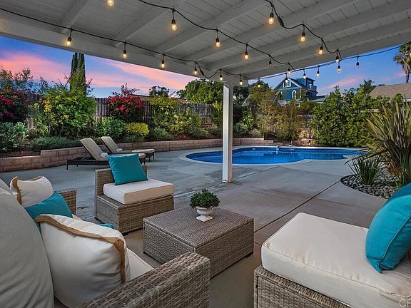 Turn-Key 4 Bedroom Single Story Pool Home! This beautifully updated one-story level home offers a rare 4 bedroom, 2 bathroom home in an open and inviting living space on a generous 7,500 sq. ft. lot. Recent upgrades include NEW ROOF and new paint. The light-filled interior features gorgeous bamboo wood flooring throughout and newer windows, including a double-opening slider for indoor-outdoor flow. Entertain in the spacious family room with a stone fireplace or the covered outside patio, equipped with market lighting. The contemporary kitchen is a standout with granite countertops and center island with seating, stainless steel appliances including a hood, kitchen nook and white cabinetry. The primary bedroom features a large walk-in closet and an updated ensuite bathroom with vanity and tile shower. There’s also a hallway bathroom featuring a vanity and bathtub and there are three additional bedrooms. Step outside to your private backyard retreat with a PebbleTec pool (refinished in 2020) and newer pool decking or the welcoming front patio with room to sit, overlooking the Glen Avon HOA private park. Additional features include air conditioning and ceiling fans providing comfort year-round, custom lighting, smart irrigation system, Arlo doorbell camera and an attached 2 car garage with new epoxy. Just steps from Glen Avon and Knob Hill park, it is also located near highly desirable Knob Hill Elementary, Woodland Middle, and Mission Hills High schools, shopping, dining, and has easy freeway access. This move-in ready property is a unique San Marcos gem!