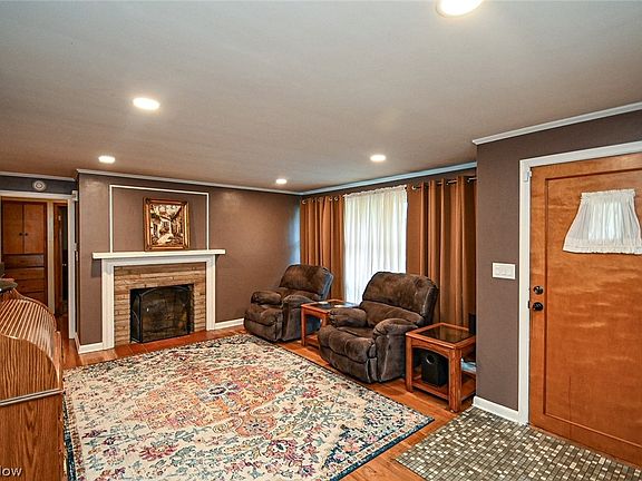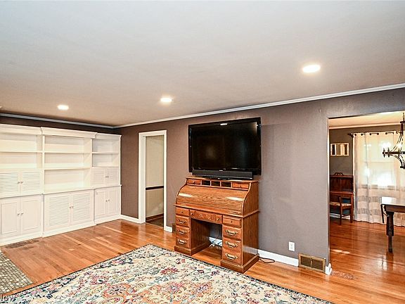 Well maintained brick ranch features spacious living room with canned lighting, large picture window, built-in bookshelves and fireplace. Formal dining room. Kitchen with stainless steel appliances, tiled backsplash and newer dishwasher (2023) Hardwood floors throughout most of home. Glazed tile basement, glass block windows. Enclosed patio, fenced backyard. Needs a little cosmetic work to make it your own.
