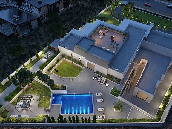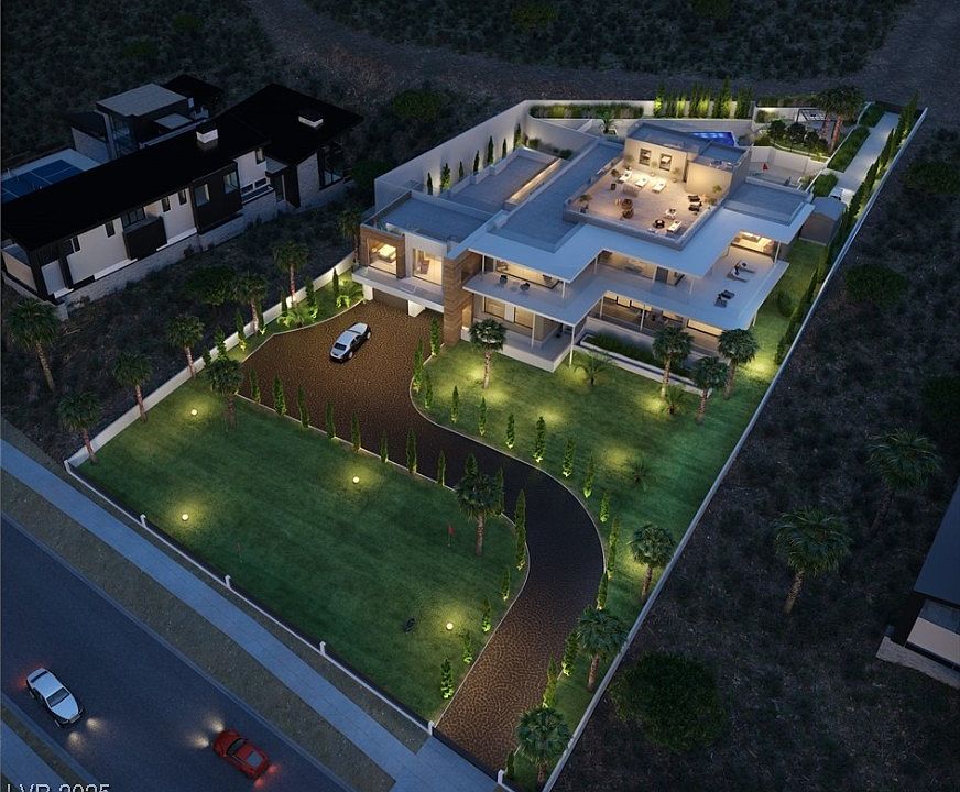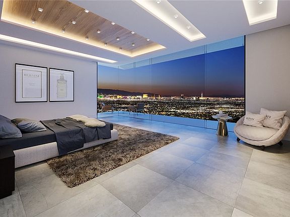 COMING 2026~Presenting resort-inspired lifestyle at the "Bellagio Estate" masterfully designed residence that affords absolute luxury with a unique design, open floor plan, and world-class amenities. There are seven bedrooms, eight baths, two powder rooms, elevator, a double-island kitchen, two wet bars, multiple fireplaces, and a 4-car garage. Experience rich comfort with a rooftop deck, movie theatre, wine cellar, meditation/yoga room, and wet/dry sauna. The rear grounds are an entertainer's dream with pool/spa outdoor fireplaces, putting green and outdoor kitchen, BBQ, a golf car garage, and lounging spaces. The home's elegant form has been constructed with openness and clarity top of mind, seamlessly converging with its surrounding natural environment. From one of the best vantage points, behold views of the golf course and Las Vegas Strip. Welcome to this exquisite property offering the ultimate resort living at the forefront of chic, modern design. All Photos are virtual.