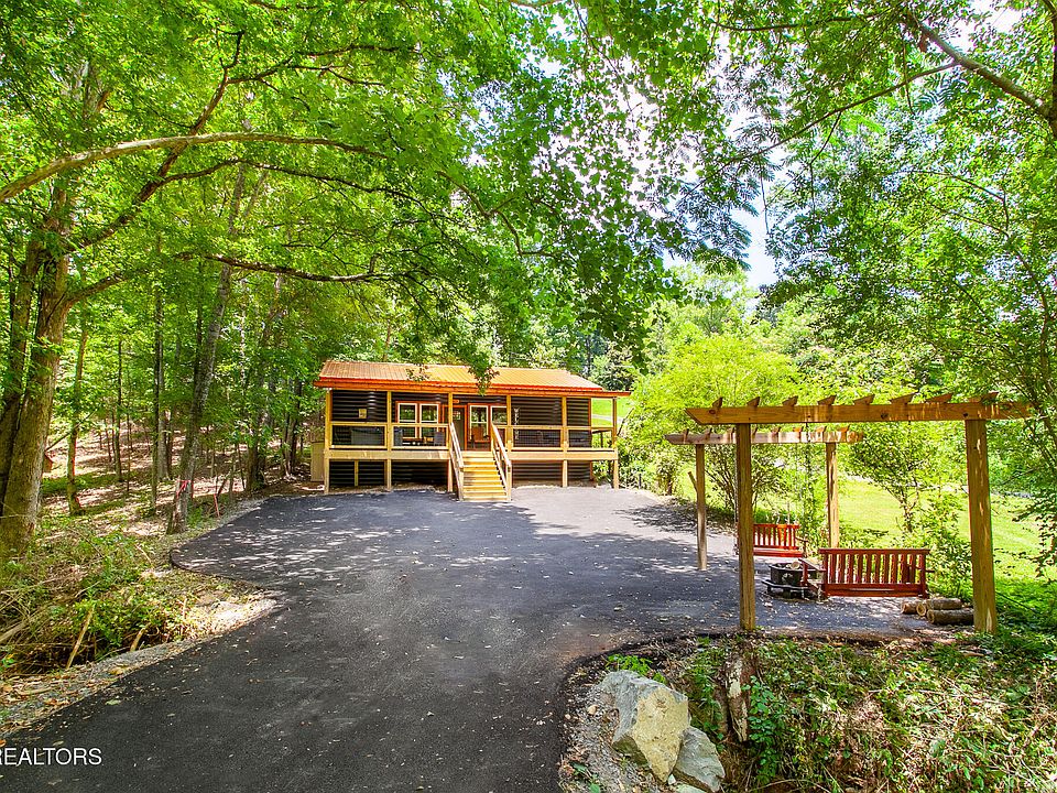 Welcome to one of Pigeon Forge's best short-term rental investment opportunities. This beautifully remodeled 3-bedroom, 2-bath cabin with a private movie theater offers the perfect blend of mountain charm and unbeatable location. Nestled among the trees, it gives you the peaceful feeling of being in the woods—yet you're almost walking distance to the entrance of Dollywood.