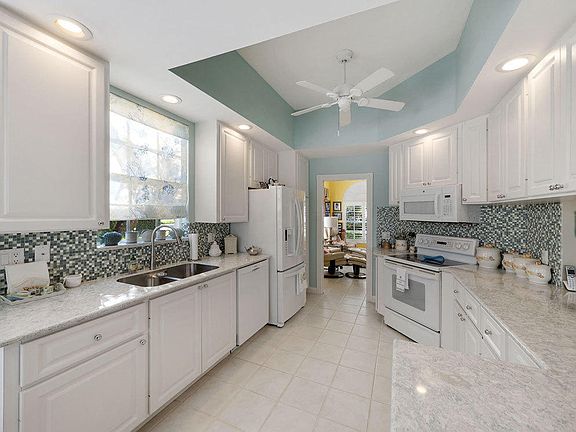 Immaculate 3/3/2 + den POOL home overlooking the lake with distant golf course views on the largest lot in the Lakes at the Florida Club, a non equity, gated golf course community. Recently upgraded kitchen includes silent Bosch dishwasher, top zero SS sink, new garbage disposal & microwave, newer LG double door fridge with freezer on the bottom & Cambria Montgomery quartz counter tops with glass tile back splash. Tile in main living areas & waterproof wood look vinyl in all bedrooms. Newly remodeled his/hers master bath has frameless glass shower doors & rock shower floor. All new light fixtures, LED lighting, smoke detectors, garage door & garage door opener. Relax on the private back patio and enjoy evening sunsets & the gorgeous view of the pool & lake right in your own backyard.