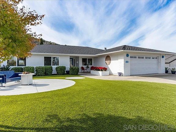 Spacious single story Lake San Marcos home located on upper San Pablo Drive with mountain views. This recently upgraded property boasts one of the largest "private" backyards in the Lake and has a lovely front patio where you can enjoy lake views with a glass of wine or your morning coffee. This flexible floorplan has 3 full bedrooms plus an office. Seller's interior renovations include beautiful wood plank tile floors throughout the entire home, can lighting in every room, new granite kitchen and bathroom counters, ceiling fans in the bedrooms and family room and electrical upgrades! The exterior additions are endless including complete home re-paint, backyard French drain, large outdoor pergola (with lighting, ceiling fan and added electrical) for summer shade, custom BBQ, above ground spa with concrete pad and new privacy fencing. The 2 car garage has beautiful storage cabinets throughout and an electrical upgrade for your electric car. Pickleball, Tennis, Golf, Boating, Dining and even live music is just a golf cart ride away. Enjoy all the amenities Lake San Marcos has to offer with no mello-roos or HOA fees.