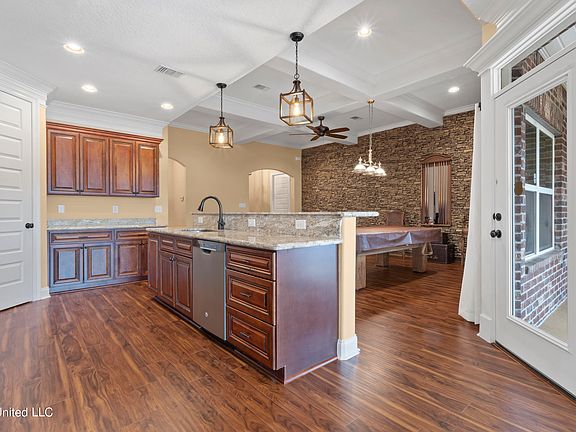 Welcome to a home that's so impeccably designed, it feels like it's been waiting just for you. The ''Alton'', built by the renowned Elliott Homes, exudes an air of exclusivity without sacrificing the warm comforts of home. Firstly, the location couldn't be better. You're within minutes of the Promenade's shops and restaurants; Interstate 10 is easily accessible for all your commuting needs; and Keesler Air Force Base is just minutes away. And yet, the home is situated far enough north of the hustle and bustle to offer a sense of seclusion and peace. You'll find this harmonious blend extends to your immediate surroundings: a small, intimate neighborhood with well-lit streets and sidewalks, inviting evening walks, and morning jogs. As you pull into your circular driveway, you'll notice the meticulous landscaping that enhances the home's curb appeal. Your three-car, three-bay garage is ready to house your vehicles or serve as a workshop for your hobbies. Your front entrance features a solid wood door that speaks to the quality you'll find throughout the home. Inside, you'll be captivated by the flooring, which is rich in color and gives your home a warm, inviting feel. The open, split floor plan seamlessly integrates living spaces while offering a sense of separation when desired. Your main suite, situated at the rear for ultimate privacy, becomes a sanctuary, complete with a spa-like bath featuring a walk-through shower and an island jetted tub for those evenings you wish to relax. The suite also boasts a generously-sized, walk-through closet leading to your laundry room, making chores just a bit easier. Your living room, spacious and grand, features a coffered ceiling that not only elevates the room's aesthetics but is sure to be a conversation starter among your guests. And speaking of guests, entertaining them will be a joy in your well-appointed kitchen, featuring a large eat-at island bar, stainless steel appliances, a pantry, and granite countertops. And just off the kitchen is the dining room, expansive enough to accommodate a sizable dining table, ensuring family gatherings will be comfortably hosted. Finally, imagine stepping onto your covered and screened-back patio and looking out into your fenced backyard with a custom basketball court that can also serve as an extra entertaining space. Don't worry if no one is a ball player. The court is not painted, and the matting and goal pole are removable, leaving you with a blank concrete patio canvas to design your ultimate outdoor living space. This isn't just a house; it's your future home, where every feature, every finish, and every little detail has been thoughtfully chosen to enrich your life. Come experience it for yourself.