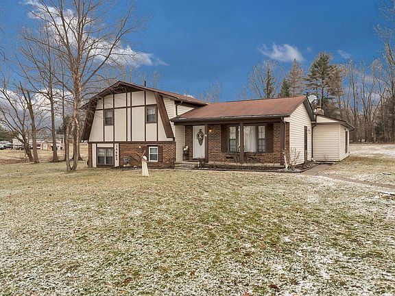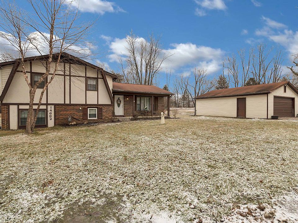 Sprawling 3-level split has great space and sits on a gorgeous .87 acre lot with a tree line. Many updates in this well maintained home. Welcoming entry and living room. Beautiful wood/laminate floors and open living space. Kitchen features stainless steel appliances, raised cabinetry and bay window. Oversized family room with dining area and stone wood burning fireplace. Ample bedrooms all with overhead lighting. Newly renovated full bathroom has deep tub and modern tile and remote controlled lights and music. Large rec room in lower level has endless possibilities. Huge deck great for cookouts! Oversized 2 car garage offers additional storage and makes a perfect workshop. HVAC 2015. Close to schools, shopping, dining and growing employment area.