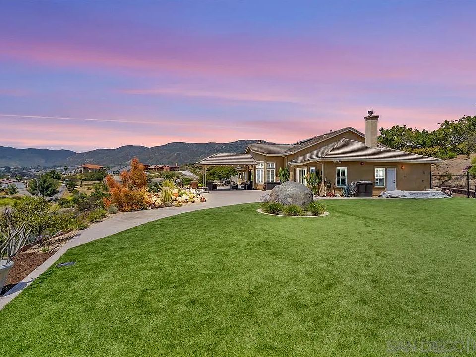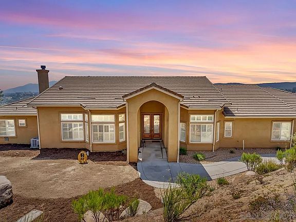 Welcome to your stunning single level estate on over 2 acres with Panoramic Views of the rolling hills of Jamul! Get ready for endless sunsets, privacy, and thoughtful planning and design throughout this custom built home. This home has only had 2 owners and shows like a model, exuding perfection! The stunning entry welcomes you and leads to an open floor plan and gourmet kitchen complete with high-end appliances. The primary suite is very spacious with a large walk-in closet, has direct access to the outdoors, and features a stunning ensuite bathroom with Jacuzzi tub and walk-in glass shower. Three large guest bedrooms, a generously sized den, high ceilings and more allow for incredible entertaining and comfort of guests. Step out back to the stunning terrace complete with a covered patio and a low maintenance yard complete with a large artificial turf lawn, all complimenting the wrap around views of the surrounding mountains. Additionally, the property features a 3 car garage, plenty of additional parking (even for the toys, boat or RV!) a solar system with battery backup, central vacuum, water softener with RO system, and more! Do not miss your chance to own this stunning move-in ready property!