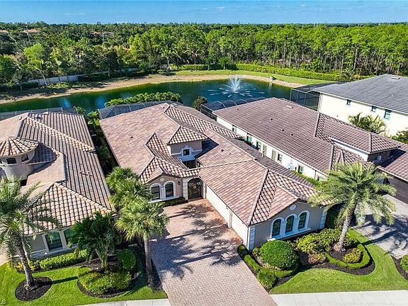 Waterfront Luxury Home Now Available offered Turnkey Furnished! Come feel the warm sunsets over the lake in Sienna Reserve! A quaint luxury home neighborhood of 45 custom homes built by Zuckerman Homes has one of the best North Naples locations! This expanded Hibiscus floor plan flows beautifully, featuring three bedrooms, a large office/den, three full bathrooms & a 3-car garage. Fantastic Lake Views with western rear exposure! Upgrades include crown molding, granite tops, upgraded cabinets, SS appliances, extra square footage, large tile throughout with a wood tile in the guest bedroom, custom draperies, upgraded lighting & more. Enjoy outdoor living at its finest with a screened-in travertine lanai, a spacious under cover area for dining and entertaining, and a sparkling custom pool surrounded by lush landscaping and western rear exposure. The oversized pool deck is ideal for sunning, lounging & dining. Rest easy with hurricane-impact windows and doors throughout. The home is also a smart-home wired for entertainment. Another wonderful feature is the gated wood bridge built exclusively for Sienna Reserve residents, providing easy access to North Collier Regional Park — perfect for dog walks, bike rides, or simply taking in the natural beauty surrounding the lake! The park offers a scenic 1.5-mile loop. This prime location is within a highly desirable school district and is centrally located near everything Naples has to offer—wonderful restaurants and shopping at Mercato, Waterside Shops, Venetian Village, and 5th Avenue. All just minutes from the pristine white-sand Gulf beaches and endless outdoor adventures! Offered turnkey furnished for your convenience—move right in and start enjoying the Naples lifestyle!