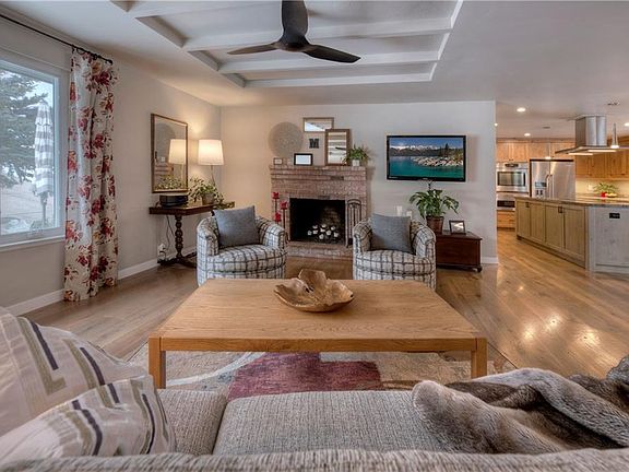 Never judge a book by its cover! This home's exterior and landscaping needs work, but the interior is gorgeously remodeled and updated with current styles and amenities you normally wouldn't find at this price point. Extensively remodeled from the studs up, this fabulous contemporary styled home has upgraded appliances, a great room floorplan, wide-planked oak floors, stunning granite and quartz counters, a wine/coffee bar, and large kitchen island with induction cooktop. The most discerning buyers will fall in love with this single story ranch with covered porch and patio in the rear, and gripping views of the mountains.