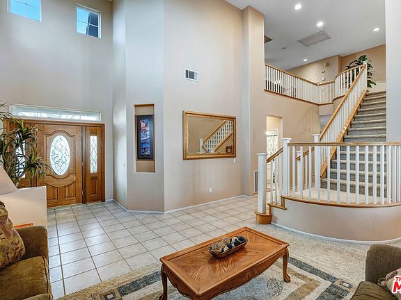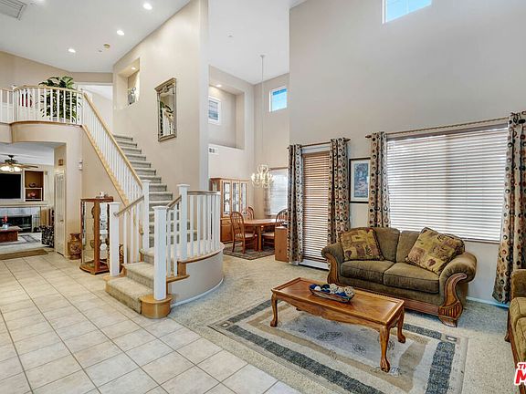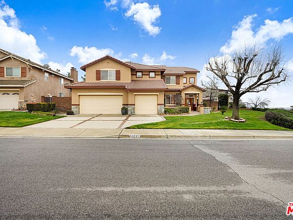 Welcome to your dream home located in the highly desirable Hunters Ridge Village Community in North Fontana! This beautiful 2-story home boasts stunning views and is perched on a spacious corner lot with exceptional curb appeal. As you step through the large entry door, into the living room you will be greeted with an open flowing floor plan with high soaring ceilings, abundant natural light that exudes elegance and spaciousness. The living room and dining area feature wooden venetian blinds that dress the windows and the door to the patio, adding a touch of style and privacy. Recessed lights, ceiling fans, carpet, and travertine tile floors add to the luxurious feel of the house. The first floor includes a cozy family room for TV viewing and relaxation by the fireplace, a breakfast area just off the family room and kitchen, and a sliding glass door off the kitchen that leads to the patio making outdoor entertaining a breeze! The yard offers great views, a grill, fountain, hot tub, sauna and storage shed that make your outdoor living space just as exceptional as your indoor one. The kitchen boasts plenty of cabinet space, an island, and pantry for additional storage and double oven. On the first floor, you will also find a bedroom, a full bathroom, and a laundry room with a utility sink that leads to the attached 3-car garage. As you make your way to the grand staircase upstairs to an open loft space that offers endless possibilities for an additional TV room or family room. The three bedrooms and full bathroom provide plenty of space for family and guests. The large Master with a balcony and an en-suite bathroom featuring dual sinks, ample counter space, walk-in closet, enclosed restroom, and a separate glassed-in shower is a true oasis of relaxation. Whether soaking in the jacuzzi tub or step outside onto the perfect balcony to enjoy breathtaking views and outdoor relaxation, you will feel as though you're living in a resort. This home is a perfect blend of elegance and comfortable living, offering ample space for both relaxation and entertaining. Don't miss out on the opportunity to call this stunning house your forever home!