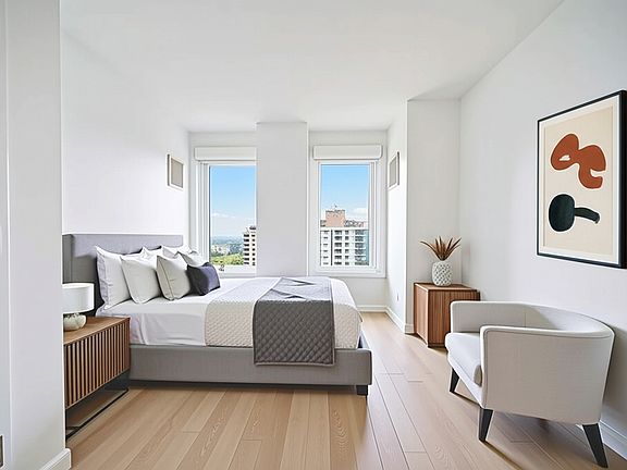 Expansive Floor-to-Ceiling Windows Maximize sunlight and offer breathtaking views of the NYC skyline and Jamaica Bay.