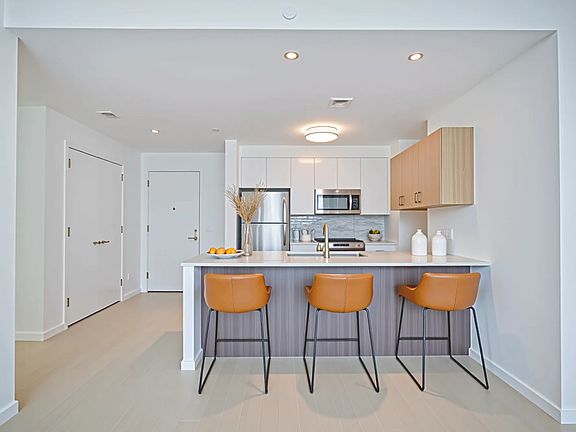 Expansive Floor-to-Ceiling Windows Maximize sunlight and offer breathtaking views of the NYC skyline and Jamaica Bay.