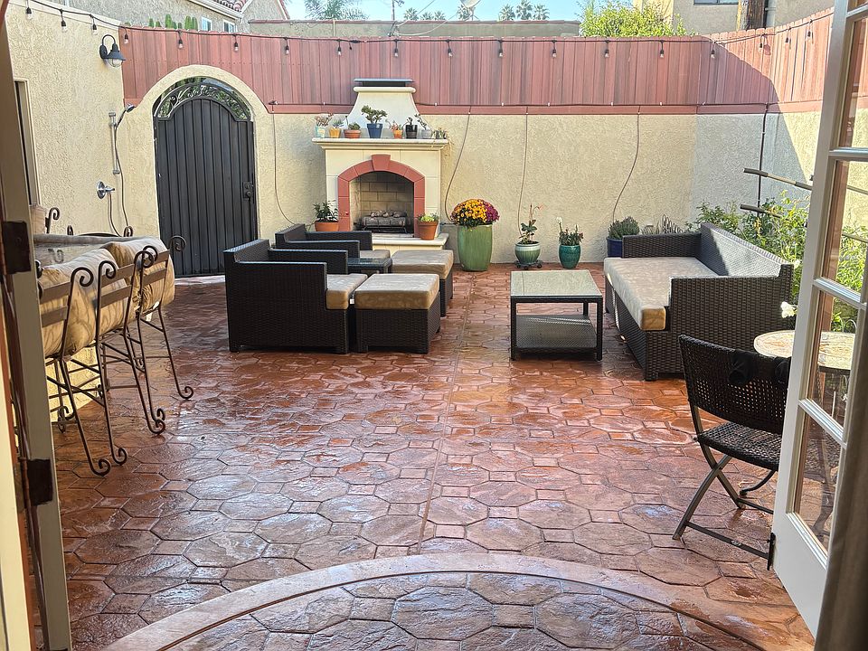 Gorgeous spanish tileLarge and inviting backyardWarm fireEuropean hvac wall unitsOutdoor warm-water showerAll new appliancesLush landscaping