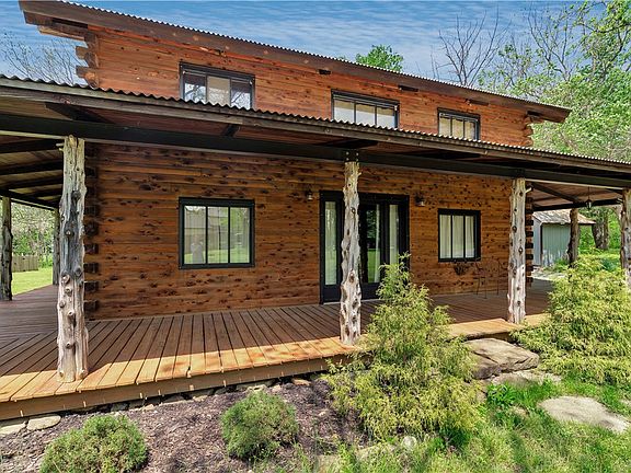 Charming log cabinPeaceful seclusionPrivate acresLevel lightly wooded lotSerene viewsRustic characterWraparound porch
