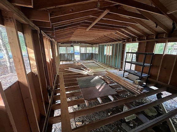 Old hunter's cabin, stripped down to studs with a new metal roof. Well and septic on site, condition and details unknown; power is right at the street in front of the house. Use the architectural plans I had drafted to rebuild on the same 15x35 footprint 1 bed/1 bath home, or tear down and rebuild your own woodland retreat. Deep double lot that goes back to an unpaved/unused road, with some surrounding property for sale. Walker Lake/WLLA is a beautiful sleepy gem in the Poconos - I bought this place to fix up on my own, but ran out of time/money. Deed is owned outright, no leans, property paid up on dues and taxes paid.
