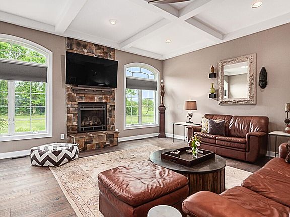Stunning custom ranch on 2.03 acres in Auld Ridge Estates. Appealing layout offers hdwd flrs, coffered ceilings & fireplaces in great rm & hearth rm. Spacious owner's suite w/3rd fireplace, large walk-in closet, ensuite w/tiled walk-in shower, soaking tub & dual vanities. This well-built home has 2x6 construction, casement windows, solid wood doors, & low maintenance foam backed exterior siding for extra insulation. Large walkout LL w/10ft ceilings, plumbed for a bath - excellent workout area or future finished space.Oversized 3 car garage w/ large, finished room above, has separate HVAC & half bath- perfect for home office or private guest suite. Fantastic outdoor space! Screened cedar porch leads to patio w/outdoor fireplace & pergola, overlooks private yard & tiered stone landscaping